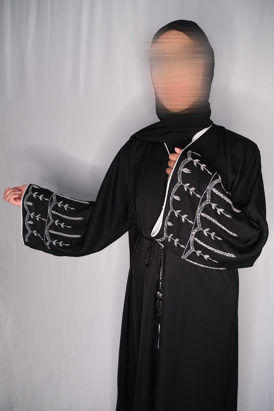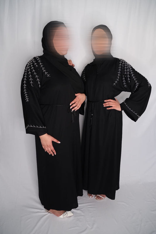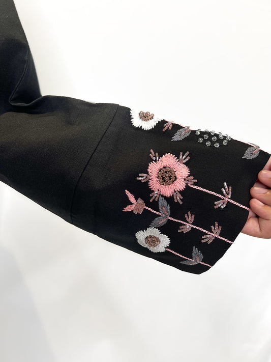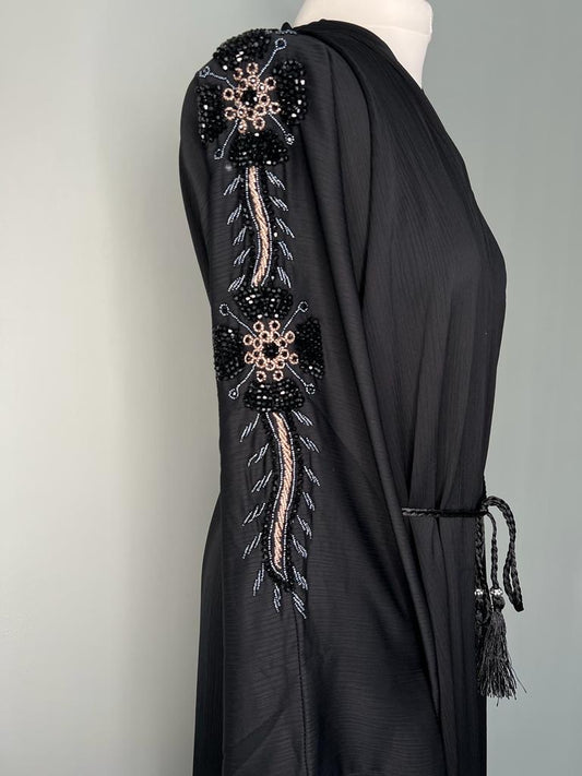 BLACK WITH SILVER BEADED SLEEVE DESIGN